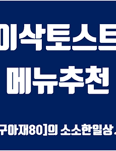안녕하세요. 구아재80 입니다. 오늘은 "이삭토스트 추천메뉴" 에 대해서 알아보겠습니다. ※ 이삭토스트 이삭토스트(Isaac Toast)1995년 개인사업을 시작으로 2003년 가맹사업을 시작하여 (주)이삭 본사의 윤리적 경영 및 상생의 철학 아래 운영되는 대한민국 토스트 1위 브랜드입니다. 대한민국의 토스트 프랜차이즈 브랜드로 800여개 이상의 매장이 운영중입니다. 이삭토스트의 "이삭"은 성경에 나오는 인물입니다. 토스트 포장지를 보면 이삭이 나오는 성경 구절이 적혀있습니다. ● 추천메뉴 : 베이컨 치즈 베이글 (3,900원) 이삭 소스를 듬뿍바른 쫄깃한 어니어 베이글 위, 베이컨과 치즈를 올려만든 이삭 토스트의 스페셜 메뉴! ※ 메뉴의 유무와 가격은 매장마다 상이할 수 있습니다. ● 추천메뉴 : 햄치..