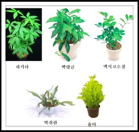 정명일(농진청 국립원예특작과학원 도시농업과장)은 "잎 면적이 1㎡ 이상 크기의 식물들이 효과가 높았다"며 "특히 잎에 털이 많은 경우 효과가 있다는 기존 생각과는 달리 잎 뒷표면에 주름이 많은 경우에 효과가 높게 나타났다" 고 설명했습니다.