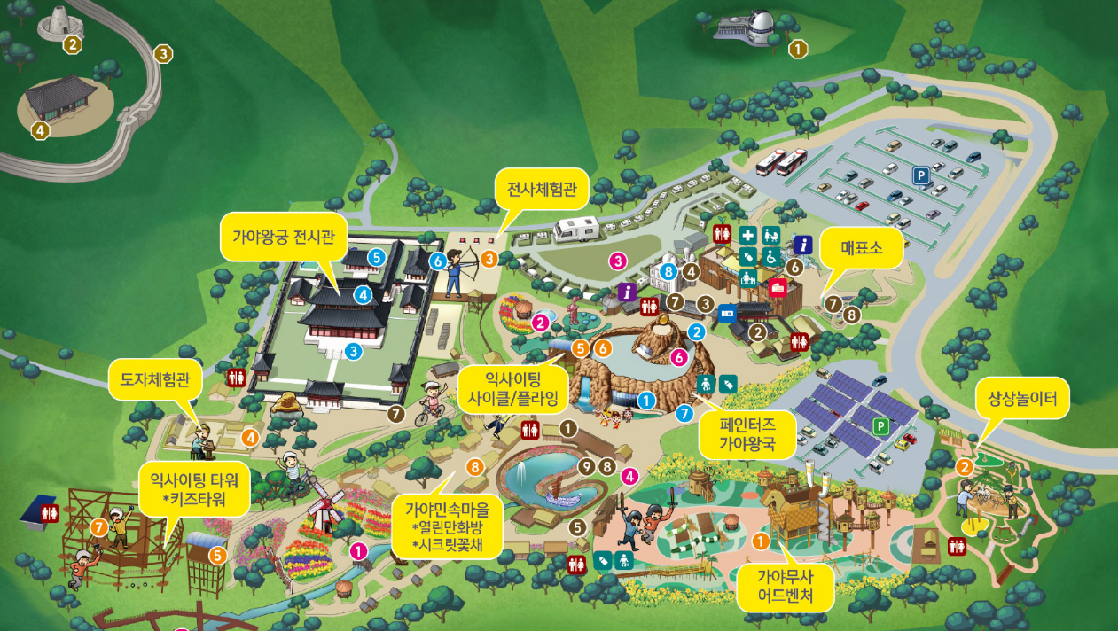 이밖에도 "페이터즈 가야왕국", "가야무사 어드벤처", "상상놀이터", "도자체험", "전사 체험" 등 다양한 놀이 시설이 있습니다.