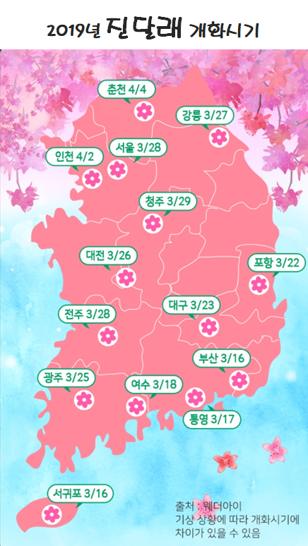 제가 살고있는 경남지역은 3월 말부터 이쁜 벚꽃들이 피어나겠네요.