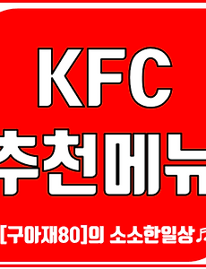 안녕하세요. 구아재80 입니다. 오늘은 "KFC 추천메뉴" 에 대해서 알아보겠습니다. ● 추천메뉴 : 블랙라벨 치킨 닭다리 통살로 만든 최고급 프리미엄 치킨(스윗칠리소스에 찍어 먹으면 더욱 맛있습니다) 닭다리살로 만든 순살치킨인데 크리스피도 바삭바삭!! ※ 8조각 (20,700원) ※ 5조각 (13,200원) ※ 3조각 (8,100원) ● 추천메뉴 : 갓쏘이블랙라벨 치킨 한국생활 36년째, 커넬 샌더스 할아버지의 두번째 손맛! 갓쏘이치킨이 이번엔 블랙라벨로 돌아왔다! 짭조름 달달, 먹을수록 은근히 땡기는 깊고 진한 간장의 맛. 프리미엄 닭다리 통살을 갓쏘이로 즐기자! ※ 8조각 (21,800원) ※ 5조각 (13,900원) ※ 3조각 (8,600원) ● 추천메뉴 : 핫크리스피 치킨 KFC만의 비법으로 매..